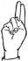 На ћирилици написано СИЛВИЈА ЗЕЧЕВИЋ састоји се из 14 слова [?]. Исписано ћириличном једноручном азбуком за глувонеме: